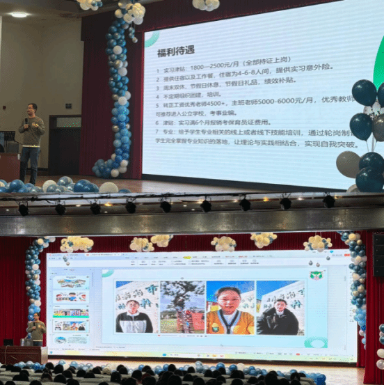 宣讲会开场是由天津伟才教育集团的园所代表刘老师率先上台,详细展开说明作为深耕幼教领域20余年的知名品牌,伟才本次开放旗下京津冀区域多所旗舰园的实习名额,以及园所均配备国际化硬件设施含蒙氏教室、感统训练室、户外自然探索区等专业空间,能让实习生沉浸式接触前沿幼教环境。