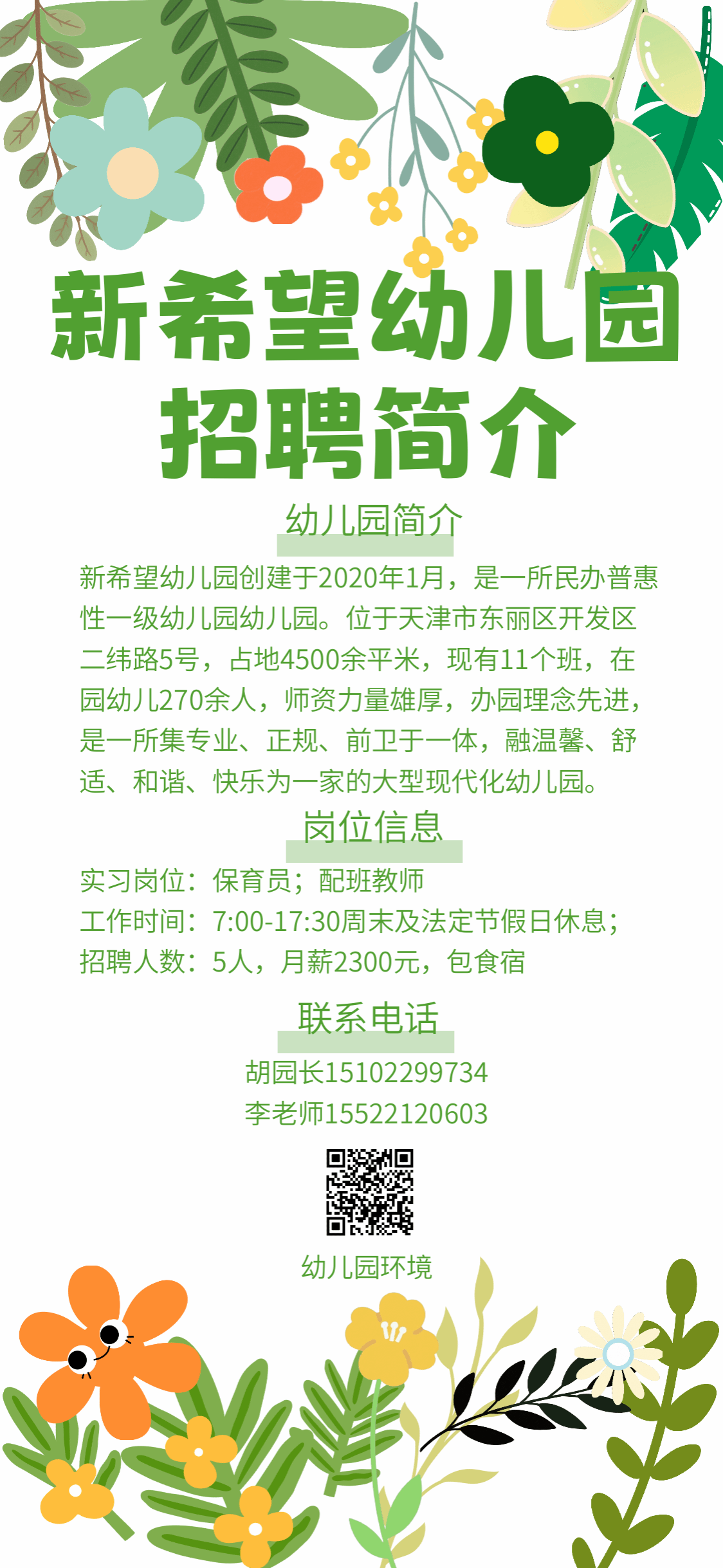 天津东丽区新希望幼儿招聘信息