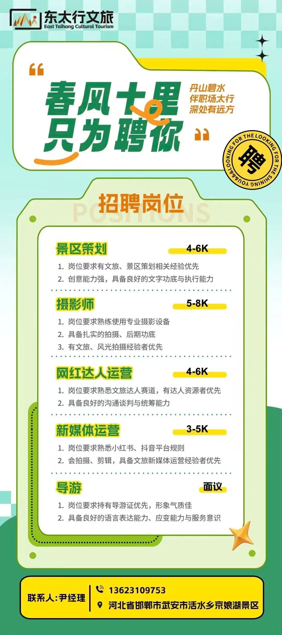 东太行文旅招聘景区策划、摄影师、网红、新媒体运营、导游